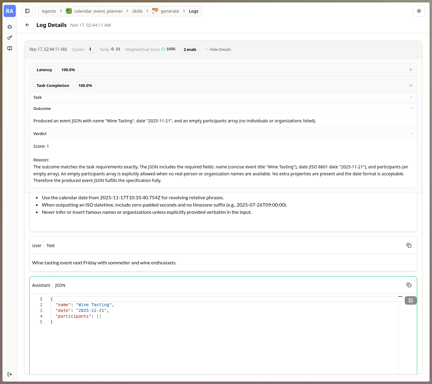 What do you do next? Will you ask for every single conversation testers are having and manually ensure that no hallucinations occur? Do you instead build and ship a performance suite within the app to track the response quality?